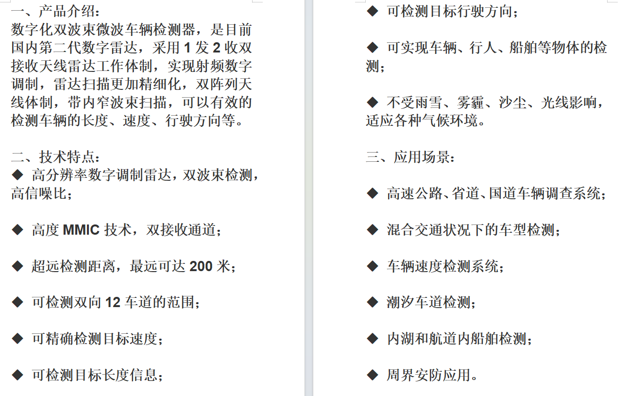 波恩仪器数字化双波束微波车辆检测器智慧交通车辆长度速度方向